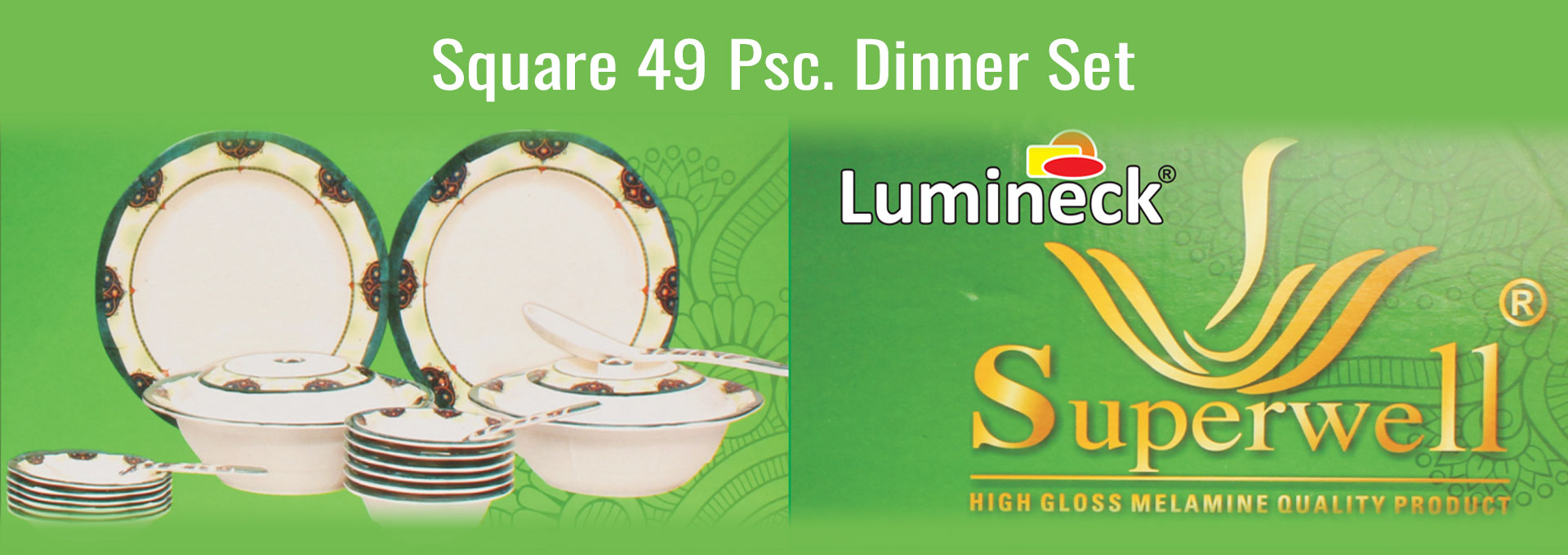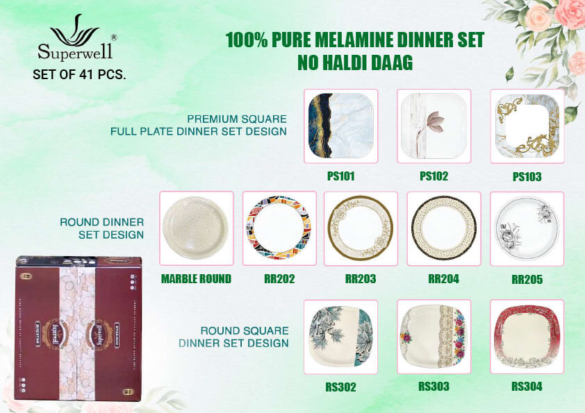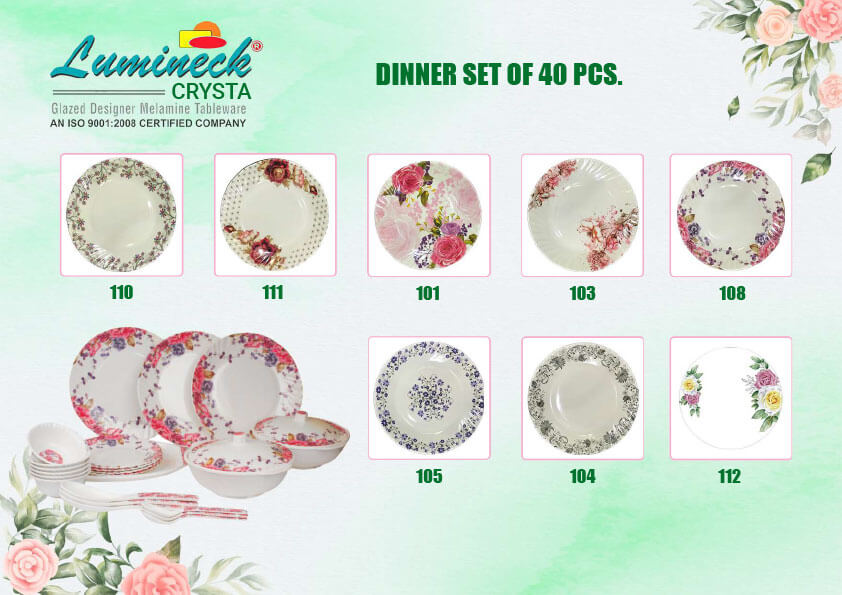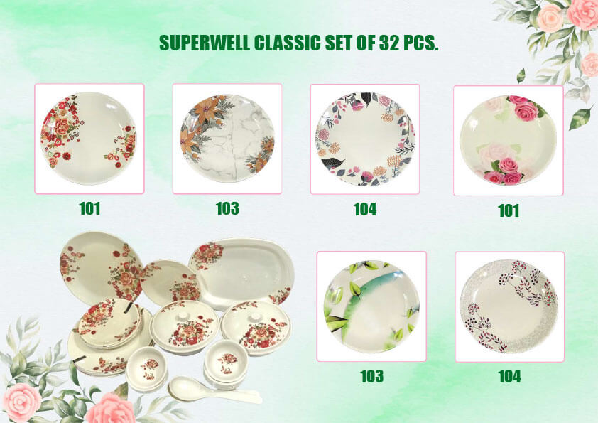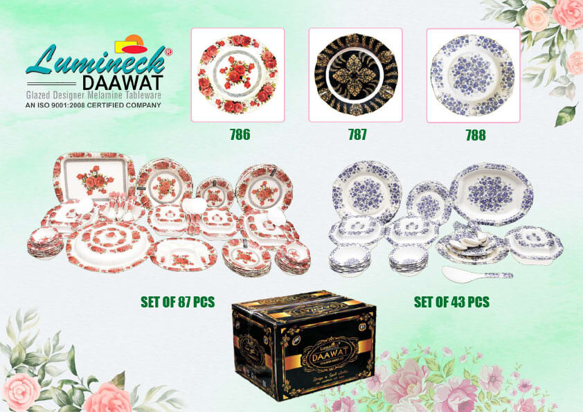 Our latest varieties are Lumineck Daawat Set 87 Pcs. And 43 Pcs. Superwell Irani Dinner Set 49 Pcs. and make Superwell and Lumineck Classic Set 32 Pcs. we also make snack and catering items and our all famous in corporate gifts items